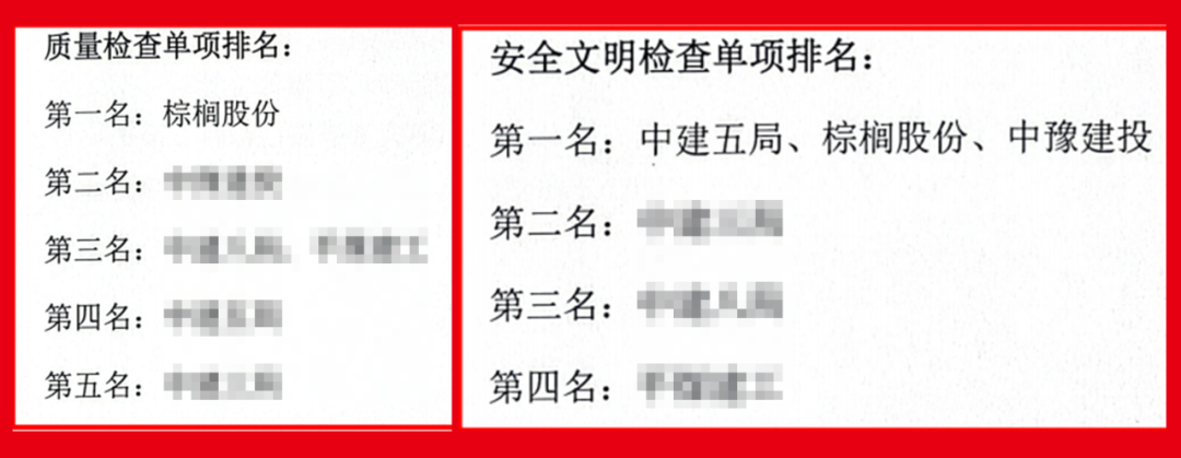 据了解,本次评比由建设单位、监理单位联合6家参建单位开展,覆盖11项核心指标。评比中,棕榈股份施工区域合格率位列榜首,彰显公司房建项目管理水平稳步提升。